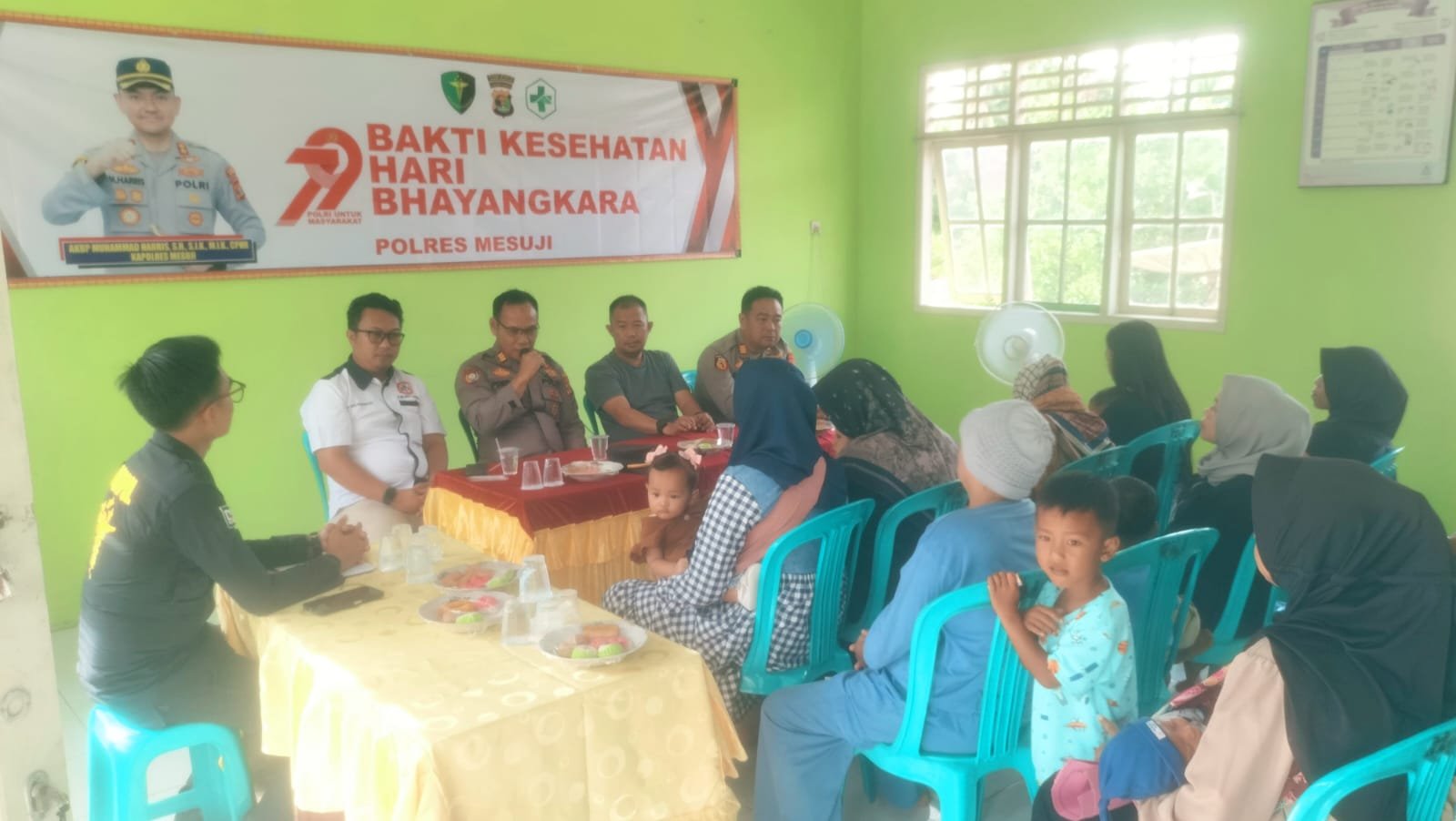Mesuji, Media Mata Lensa.id – Dalam Rangka memperingati HUT Bhayangkara Ke 79 Jajaran Polres Mesuji melalui Kasie Dokkes mengadakan acara Bhakti Kesehatan di Desa Harapan Jaya Kecamatan Simpang Pematang Kabupaten Mesuji. Jumat (13/06/25)