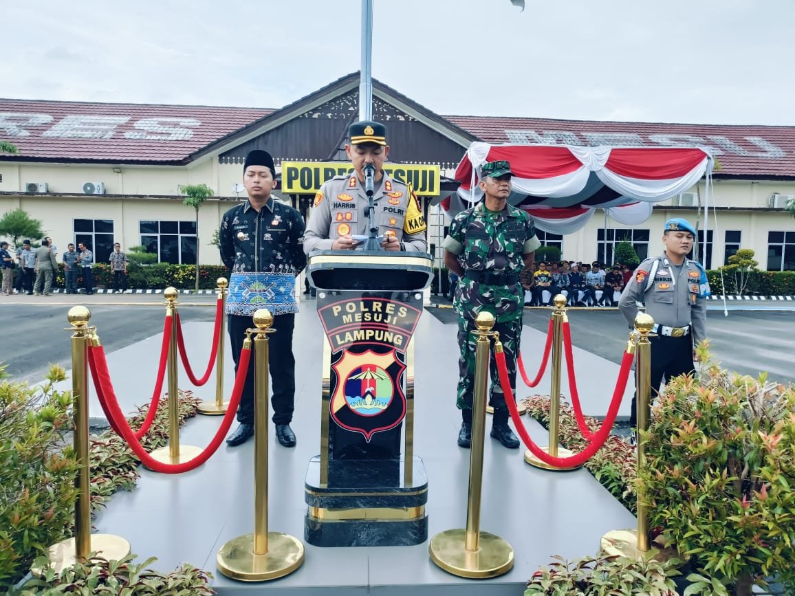 Saat memimpin Apel, Kapolres Mesuji AKBP Muhammad Harris S.H, S.Ik, M.Ik, CPHR menyampaikan amanat Kapolri Jend. Polisi Drs. Listyo Sigit Prabowo M.Si, Apel gelar pasukan merupakan bentuk komitmen untuk memastikan kesiapan Personel dan sarpras, serta memperkuat sinergitas dengan stakeholder terkait sehingga operasi ketupat 2025 dalam rangka pengamanan mudik serta perayaan hari raya idul Fitri 1446 H dapat berjalan dengan aman, tertib dan lancar.