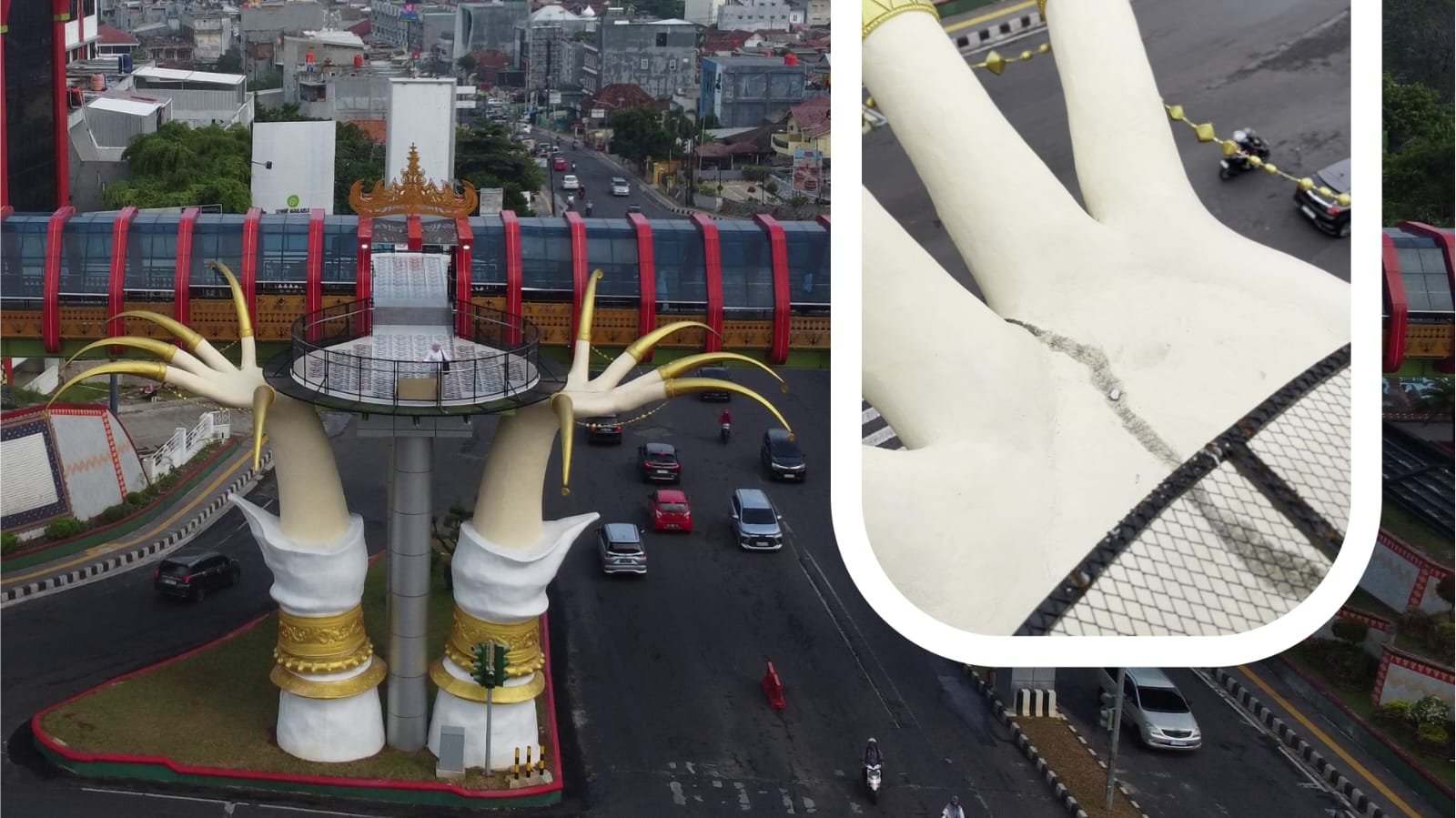 “ini bunda sudah meminta kepala Dinas PU, untuk segera membersihkan lumut di Ikon jari jembatan”,tambah Eva Dwiana.
