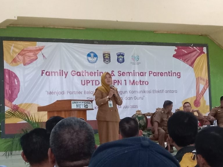 METRO,mediamatalensa — Dalam upaya mempererat sinergi antara sekolah, orang tua, dan siswa, UPTD SMPN 1 Metro menggelar acara Family Gathering dan Parenting bertema “Menjadi Partner Belajar: Membangun Komunikasi Efektif antara Siswa, Orang Tua, dan Guru,” bertempat di GSG SMPN 1 Metro, Senin (14/7/2025).