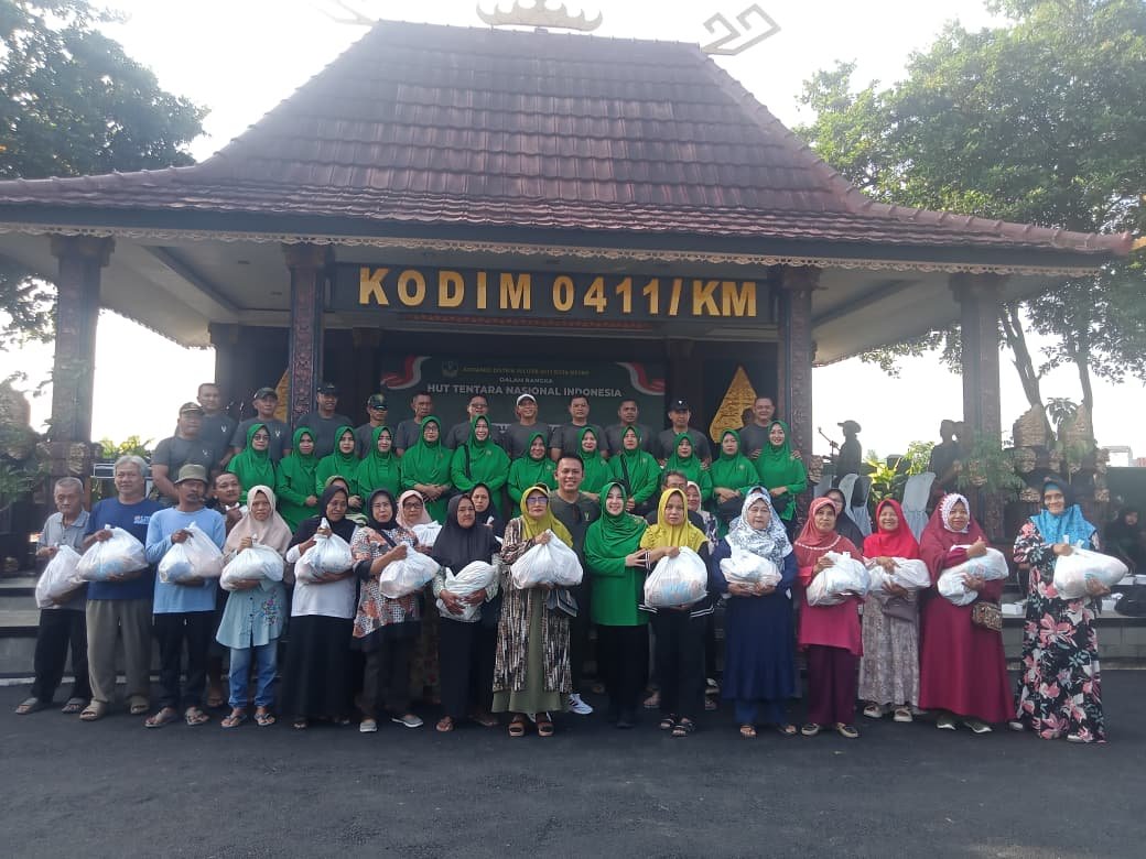Kegiatan yang dipusatkan di halaman Makodim 0411/KM ini diikuti oleh ribuan peserta, terdiri dari seluruh personel TNI, Persit Kartika Chandra Kirana, serta masyarakat sekitar yang turut memeriahkan suasana penuh kebersamaan.