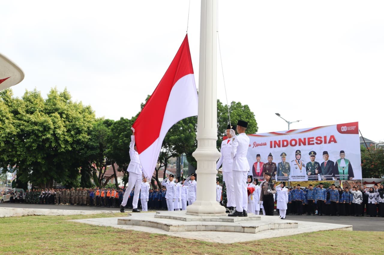 Bandar Lampung, Media Mata Lensa.id – Wali Kota Bandar Lampung Hj. Eva Dwiana hadir sebagai Inspektur Upacara pada peringatan HUT RI Ke-80 yang di selenggarakan di halaman kantor Pemerintah (Pemkot) Bandar Lampung, Pada Minggu (17/08/2025).
