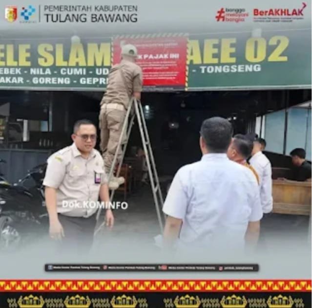Tulang Bawang Lampung, Media Mata Lensa.id – Pemerintah Kabupaten Tulang Bawang melalui Tim Terpadu melakukan penyegelan peringatan terhadap Rumah Makan (RM) Slamet Wae Simpang 5, sebagai bentuk penegakan kepatuhan pajak daerah.(31/07/2025)
