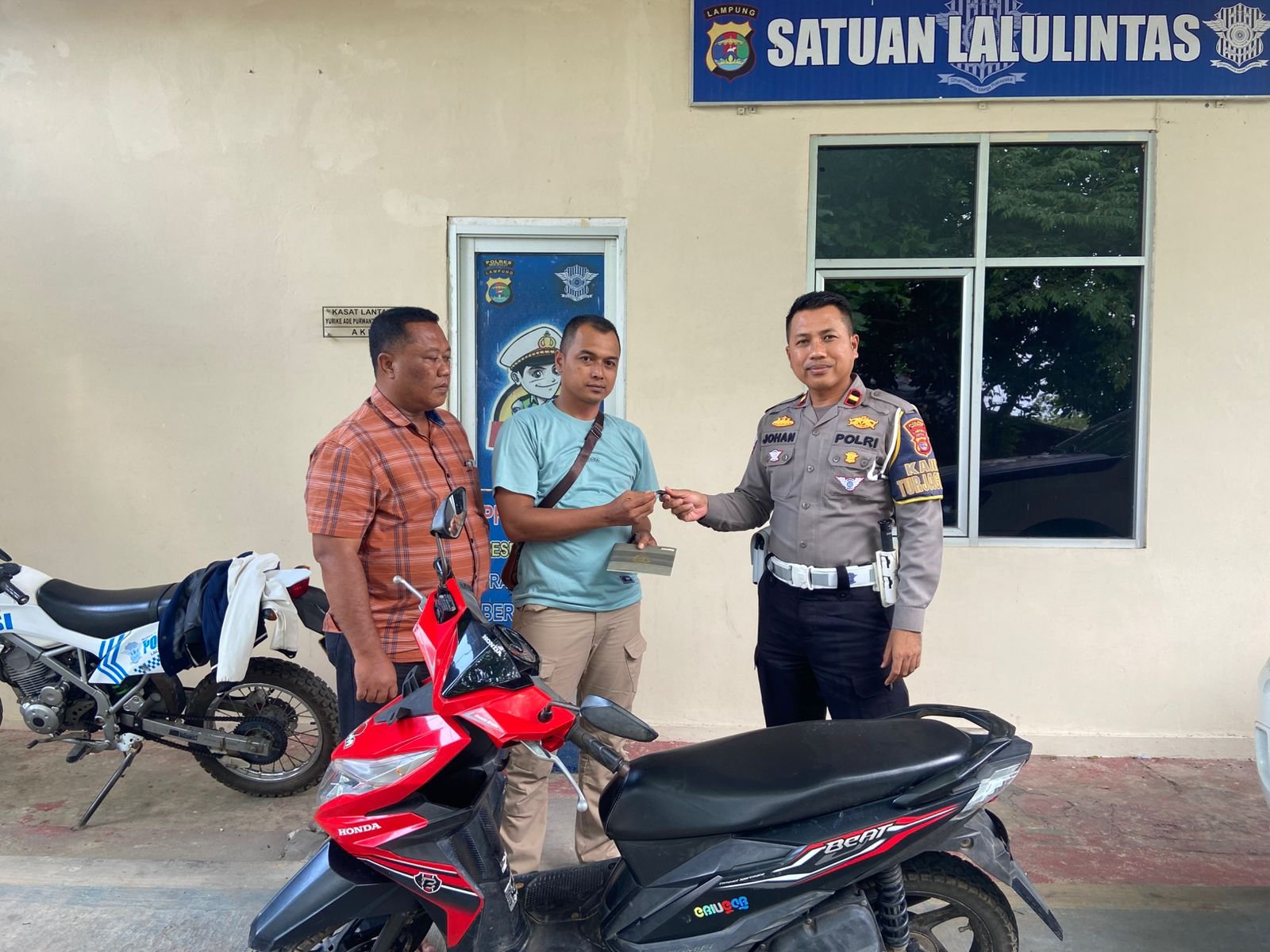 Mesuji, Media Mata Lensa.id – Sat Lantas Polres Mesuji menyerahkan satu unit sepeda motor Honda Beat hasil tidak pidana pencurian yang terjadi di Wilayah Hukum Polres Lampung Tengah Polsek Way Pengubuan pada Tahun 2021 lalu. Kamis (28/08/25)