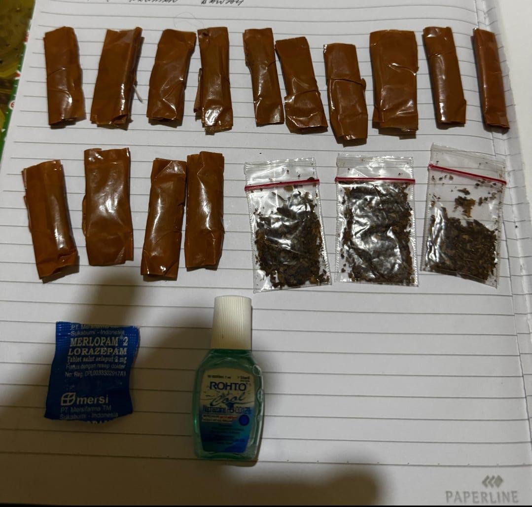 Kronologi kejadian bermula saat Tim Patroli Presisi Sat Samapta Polres Metro sedang melaksanakan Patroli dan mendapati dua orang pria yang mencurigakan sedang duduk di trotoar sebelah Masjid Taqwa, depan Kantor PUPR Kota Metro, sekitar pukul 21.45 WIB. Petugas kemudian melakukan pemeriksaan terhadap keduanya, termasuk badan, kendaraan, dan barang bawaan. Dari hasil pemeriksaan, ditemukan 17 klip diduga narkotika jenis tembakau sinte yang disimpan di dalam tas kain putih di bagasi sepeda motor Yamaha NMax. Selain itu, petugas juga menemukan 1 (satu) butir obat Merlopam 2 Lorazepam di kantong depan celana yang dikenakan oleh RE.