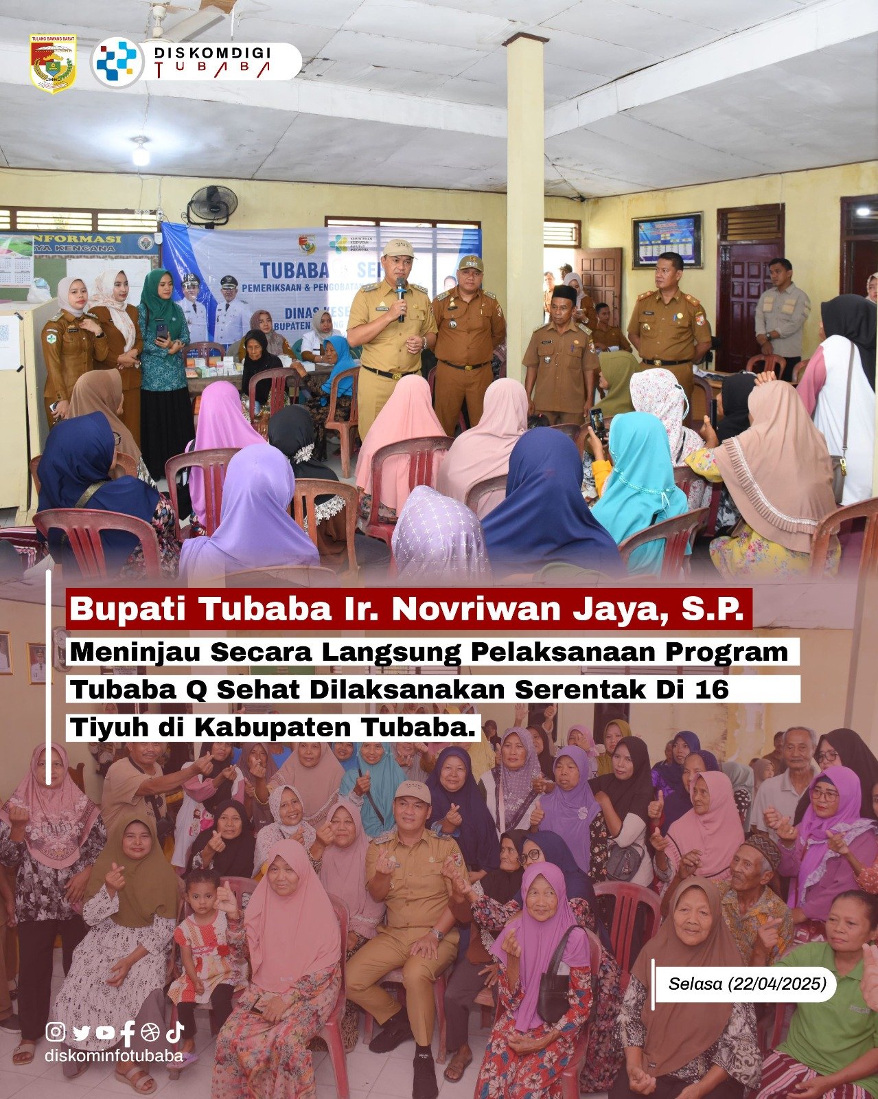 Hal itu disampaikan Bupati Ir. Novriwan Jaya, S.P., saat meninjau secara langsung pelaksanaan program Tubaba Q Sehat yang dilaksanakan serentak di 16 tiyuh (desa) yang ada di Kabupaten Tubaba. Selasa (22/04/2025).