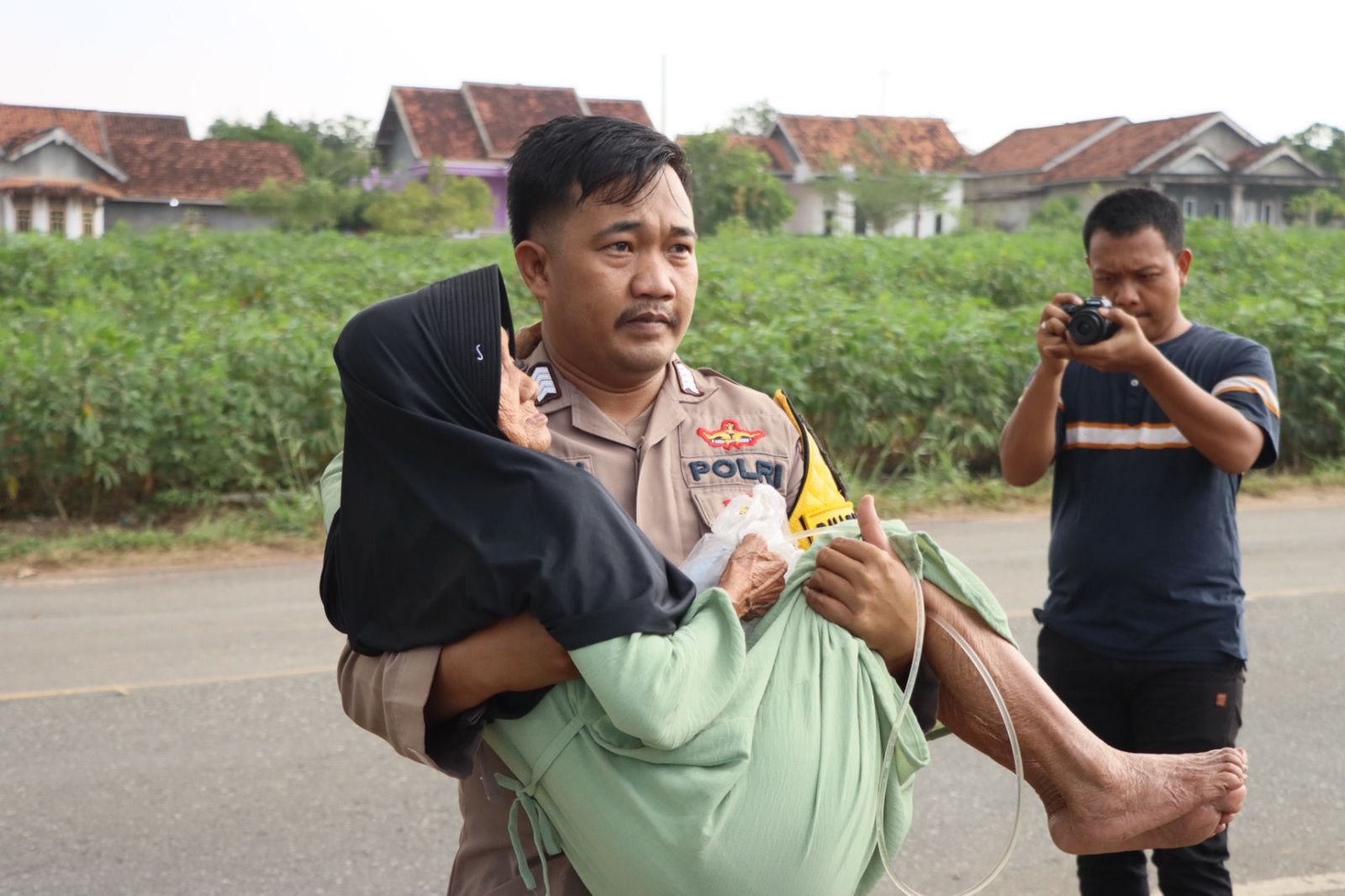Mengetahui hal itu, tanpa ragu, Syapriyanto langsung menghampiri dan menggendong nenek itu.