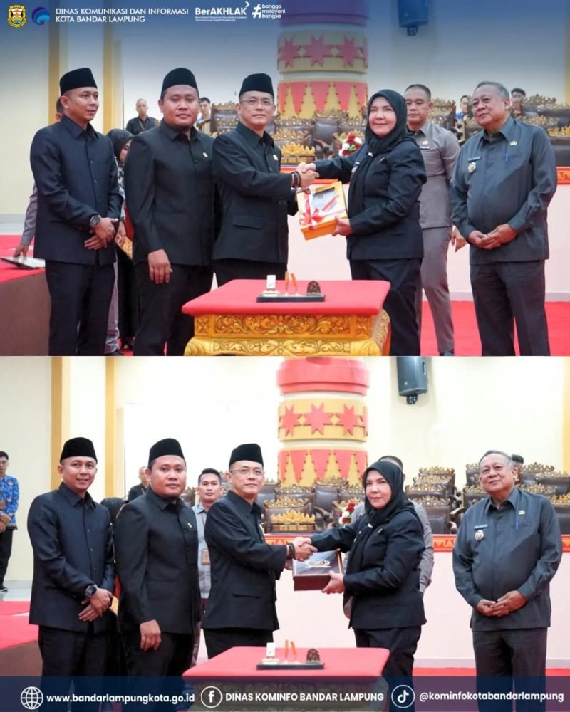 Wali Kota Bandar Lampung menyampaikan Laporan Keterangan Pertanggung Jawaban (LKPJ) Tahun Anggaran 2024 serta Rancangan Awal Rencana Pembangunan Jangka Menengah Daerah (RPJMD) Tahun 2025–2029 dalam forum resmi bersama DPRD dan jajaran Pemerintah Kota Bandar Lampung.
