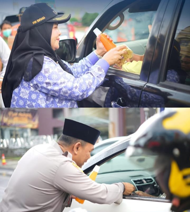 Walikota Bandar Lampung, Hj. Eva Dwiana, mengatakan pihaknya bersama Kapolres dan Dandim membagikan takjil berupa sirup dan juga kue kering untuk masyarakat.