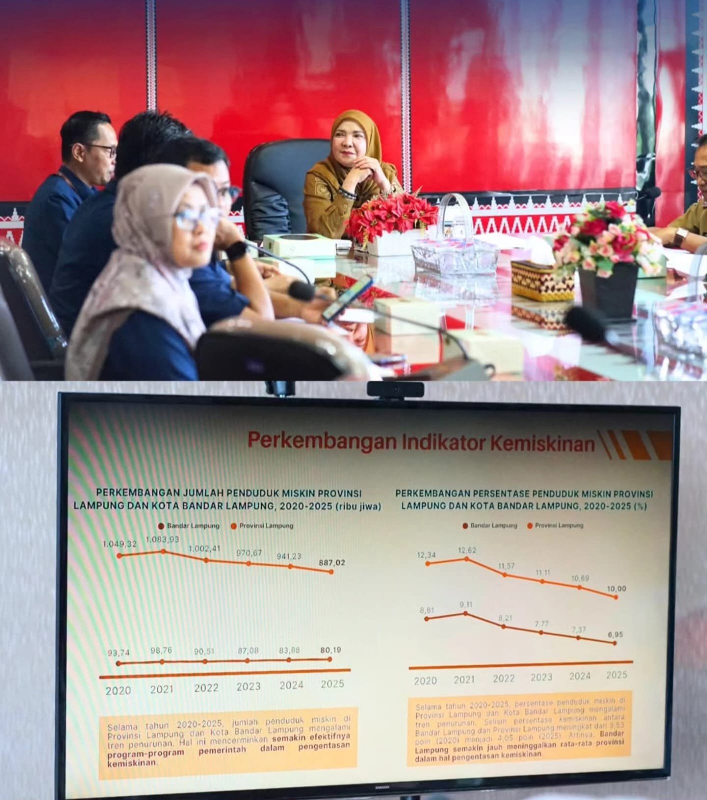 Kepala BPS Kota Bandar Lampung, Dr. Hady Suryono, M.Si menjelaskan angka kemiskinan tahun 2025 tercatat sebesar 6,95 persen atau angka ini turun 0,42 persen dibandingkan tahun 2024 yang mencapai 7,37 persen dan berada di posisi terbaik di Tingkat Provinsi Lampung.
