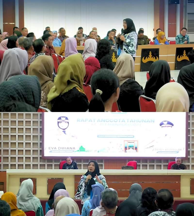 Bandar Lampung, Media Mata Lensa.id – Walikota Bandar Lampung, Hj. Eva Dwiana melaksanakan Rapat Anggota Tahunan (RAT) KPRI Ragom Gawi Ke_45 oleh pemerintah Kota Bandar Lampung Tahun anggaran 2024 di Aula Gedung Semergou, Kamis (20/03/2025).
