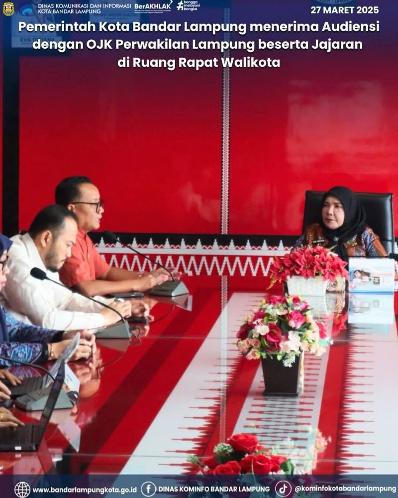 Bandar Lampung, Media Mata Lensa.id – Pemerintah Kota Bandar Lampung menerima Audiensi dengan OJK Perwakilan Lampung beserta Jajaran di Ruang Rapat Walikota, Kamis (27/03/2025).